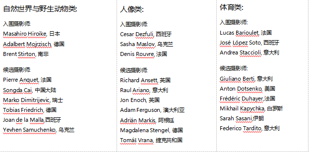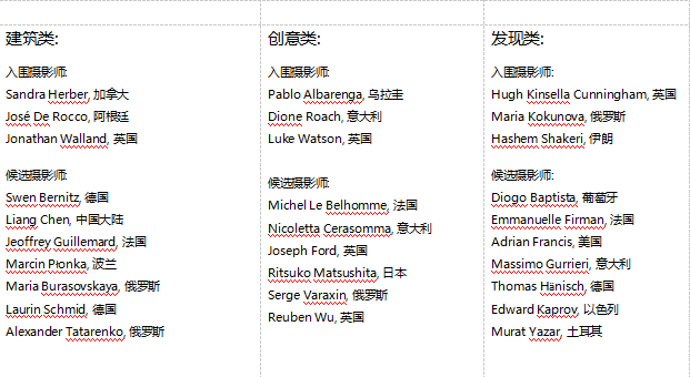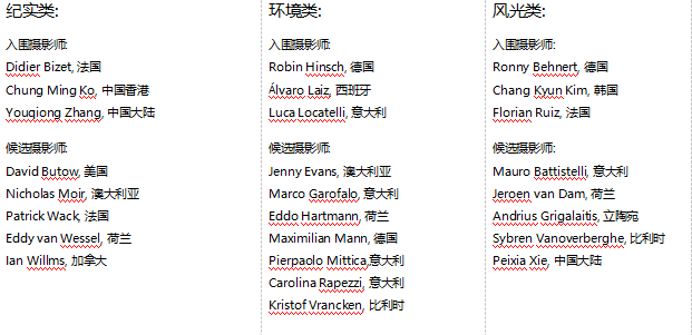 在刚刚公布的入围及候选名单中,一共有 6 位来自中国的摄影师,他们分别为: