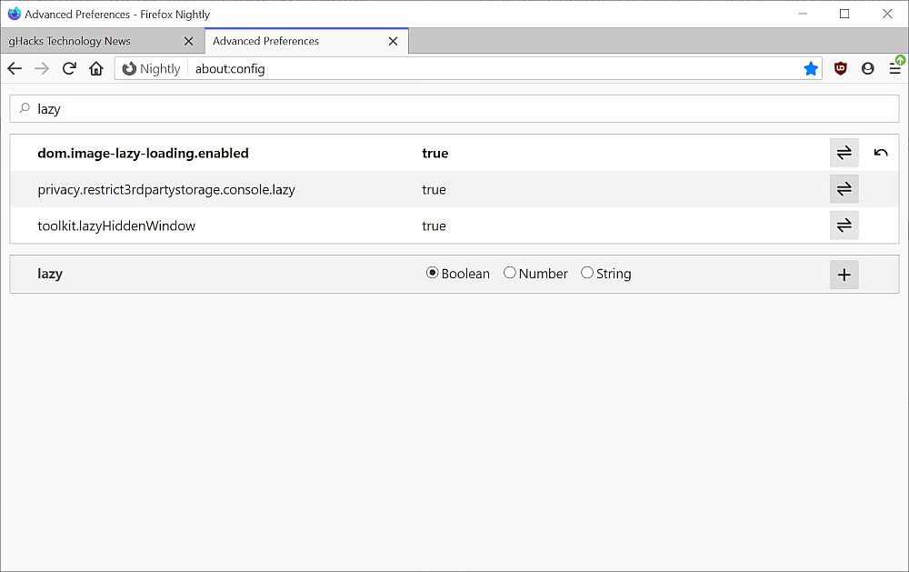 想要启用惰性加载功能,可以转到about:config页面,搜索“lazy”,然后将dom.image-lazy-loading.enabled设置为true,重新启动浏览器后,转到测试站点以查看正在执行的延迟加载。