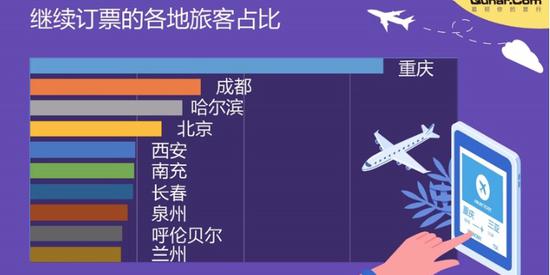 从继续订票的旅客户籍地来看,重庆和成都的旅客在疫情爆发后仍选择继续购票。同时一些二线城市,南充、泉州、长春等也进入了继续购票城市的Top10。