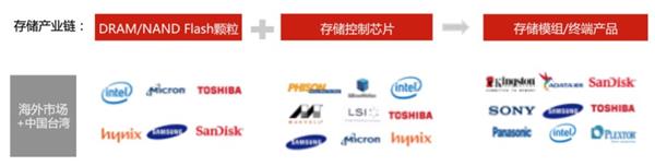 半导体存储的发展不过几十年时间,从整个存储产业来看,整个产业链目前逐渐分为三个大的产业环节,分别是:DRAM/NAND Flash存储芯片(颗粒),存储控制器芯片以及存储模组/产品,虽然国内厂商在三个环节都在奋起直追,但目前看占据市场垄断地位的仍是国际大公司。