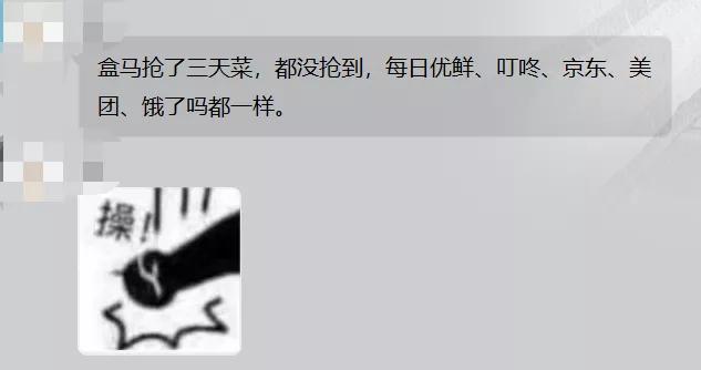 “ 为了抢菜,我每天得定3 个闹钟,都快抢到神经衰弱了。然后你知道嘛,我啥都没抢到。”