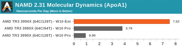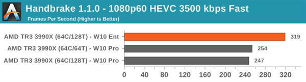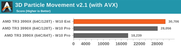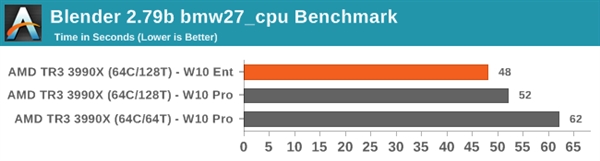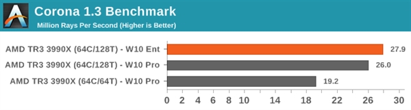AnandTech日前在对AMD线程撕裂者3990X的评测中发现一个问题:对于这个拥有64核心128线程的怪物来说,Windows 10并不能充分释放其性能潜力,而且不同版本表现不一,Professional专业版下的成绩明显低于Enterprise企业版。真的如此吗?