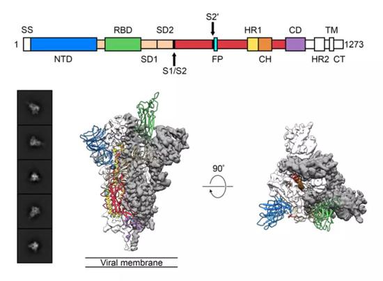 ▲ 新冠病毒S蛋白的结构