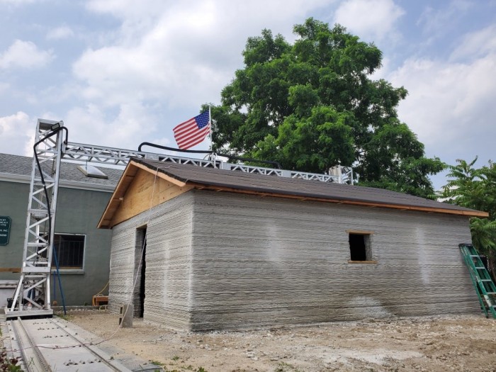 该公司通过电子邮件告诉New Atlas:“我们的机器是一台简单的龙门式笛卡尔打印机,但我们拥有专利功能,使我们与包装分离。我们正在使用带有矩形旋转(切向)喷嘴挤出受控带状物,以及我们正在尝试的其他一些功能。”该项目是SQ3D在纽约长岛的工厂外建造的,并且分几个阶段进行,而不是一次完成,因为该公司想测试其设备和技术。在机器完成工作后,工作人员继续完成了屋顶和窗户的装饰。