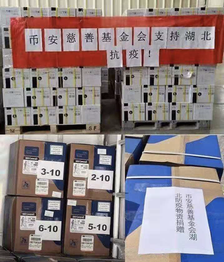 得知湖北武汉发生新型冠状病毒疫情后,币安决定向湖北的医院和需要帮助的机构捐助价值一千万人民币的物资,并由币安慈善牵头紧急成立“疫情防控工作小组”,迅速展开捐助工作。截止目前,币安捐助的多批物资已经到达一线医务人员的手中,并投入使用。