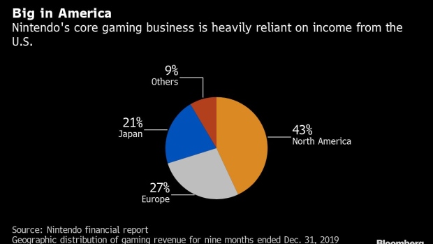 图:北美地区是任天堂核心游戏业务收入的最大来源