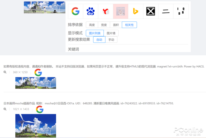 搜图的结果丰富详细,画师、画作名字等等信息都一目了然