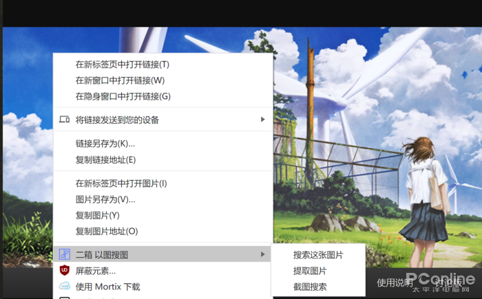 在网页的某张图中点击右键,就可以看到“二箱 以图搜图”的各种选项,包括直接搜图、提取图片、截图搜索三个选项。如果你要以图搜图的话,直接点击对应的选项即可,搜索出来的结果非常丰富。