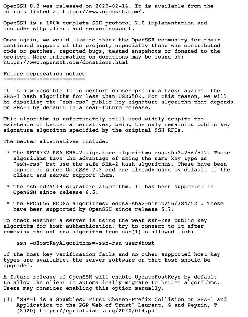 完整的更新说明查看:http://www.openssh.com/txt/release-8.2