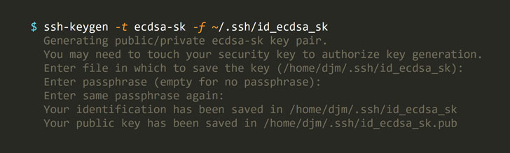 ssh-keygen(1) 可用于生成 FIDO 令牌支持的密钥,之后它们的使用方式与 OpenSSH 支持的任何其它密钥类型非常相似,只要在使用密钥时附加硬件令牌。
