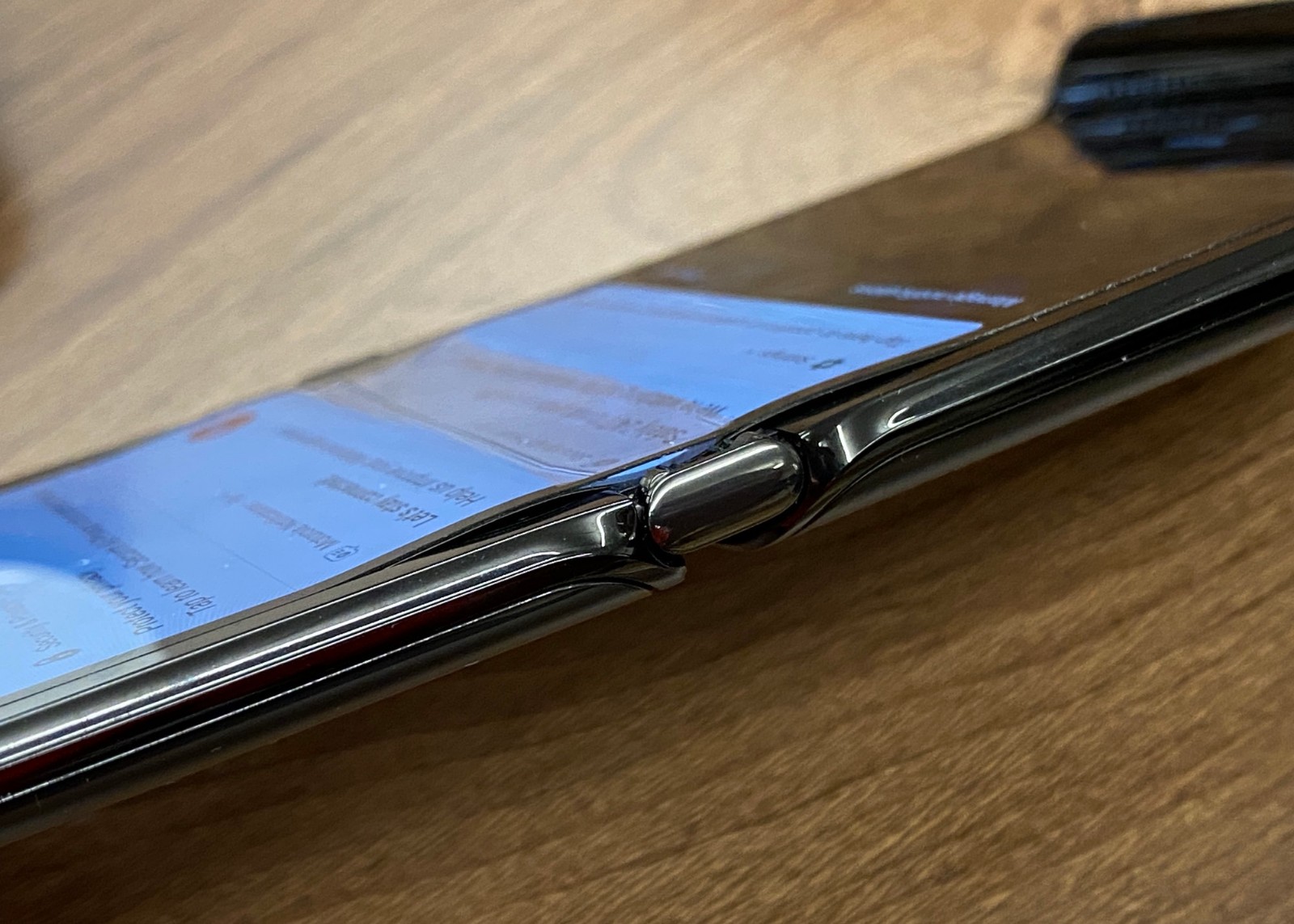Input的Raymond Wong 周日发表了一篇文章,介绍了他在使用新Razr时遇到的问题。在购买这款手机一周后,Wong注意到屏幕已经开始在铰链处剥离掉层压板顶层,从而在屏幕和层压板之间形成气泡。