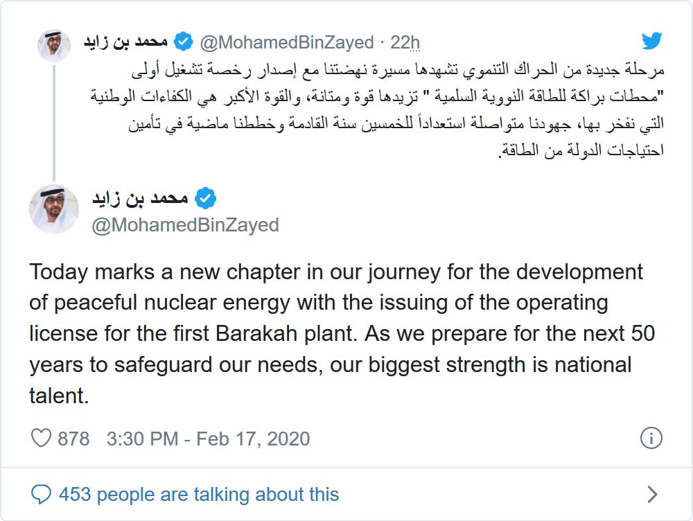 原标题:阿联酋批准运营阿拉伯世界首座核电站