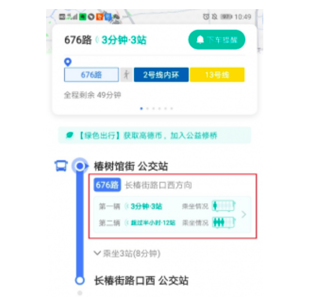 市民打开最新版的高德地图App,输入起点和终点查询公交地铁换乘方案,使用“实时公交”服务,或者查看“地铁图”,均可以查看实时的客流满载情况。