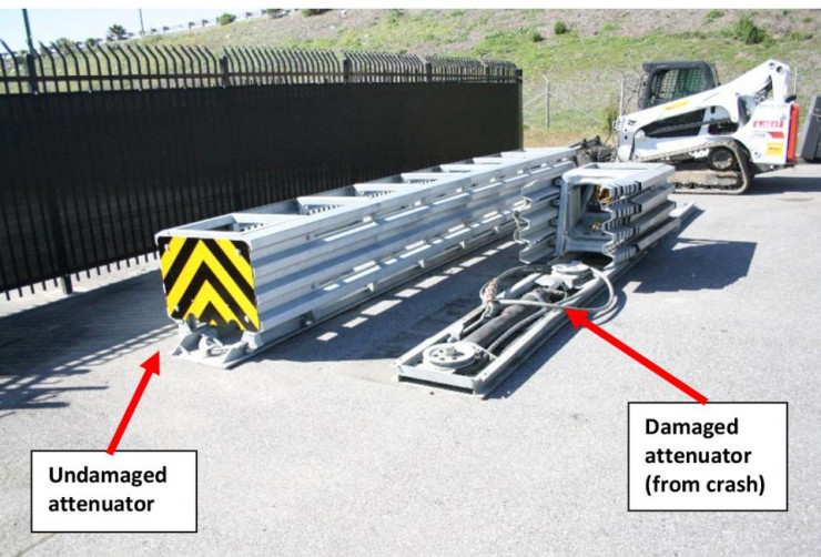 需要注意的是,美国高速路上水泥隔离墩前本该放置一个金属的碰撞缓冲器,一旦碰撞发生它就会吸能来帮车主保命。可惜,这里的碰撞缓冲器已经变形,起不到吸能的作用了。除此之外,缓冲器的变形也造成了 Autopilot 目标识别的失误。
