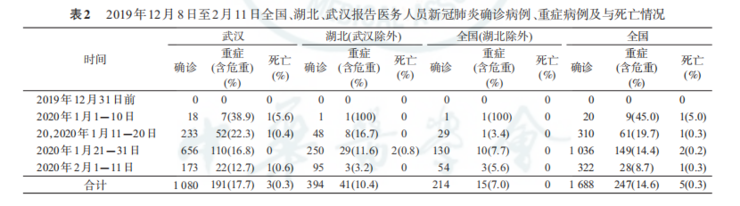 另外,论文还就医护人员确诊、重症、死亡的情况做了统计分析。