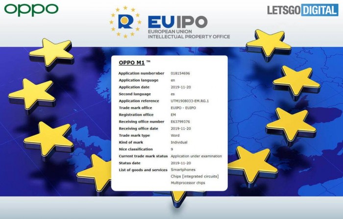 2019 年 11 月,荷兰科技媒体 LetsGoDigital 报道,“OPPO M1”商标已经通过了欧盟知识产权局(EUIPO)的批准,商标说明包括芯片集成电路、半导体芯片、用于集成电路制造的电子芯片、智能手机。