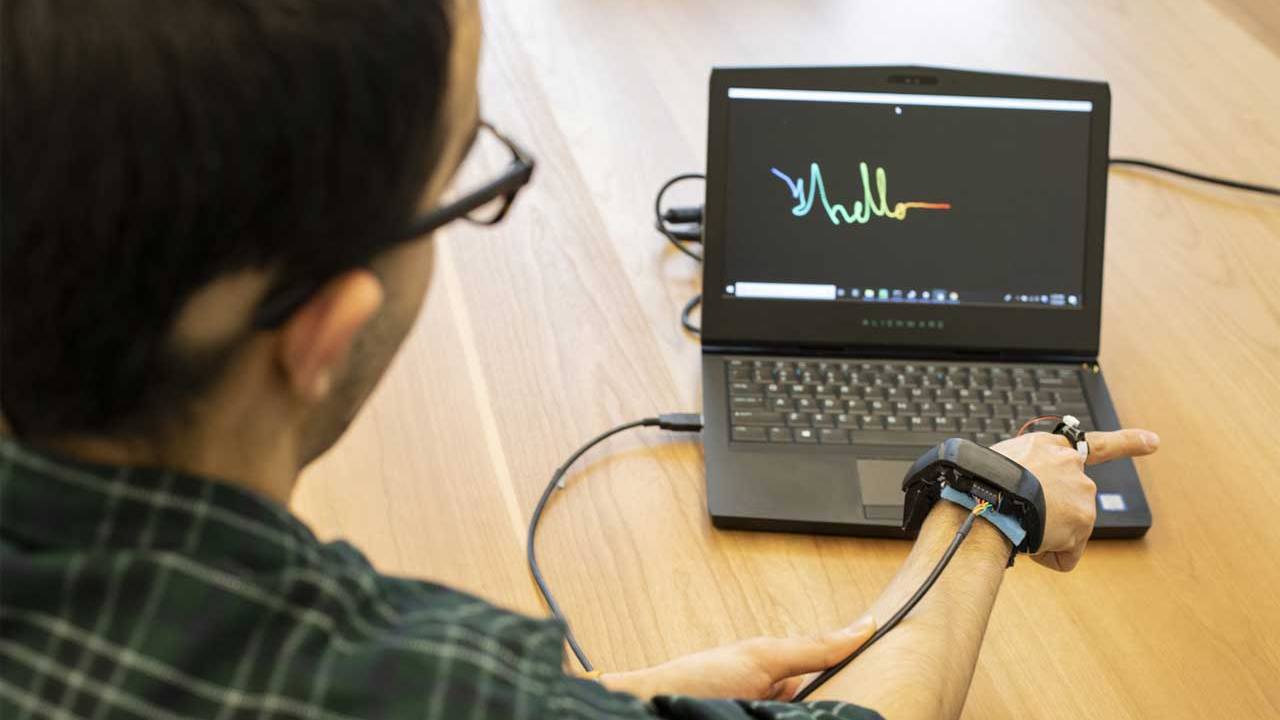 华盛顿大学研究人员发明了一种可佩戴的腕带和戒指组合,可以检测食指的精确位置。该系统还可以连续跟踪用户食指的位置。研究人员说,戒指发出一个信号,由腕带接收,可以识别戒指的位置和方向以及戴在身上的手指。