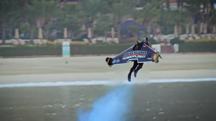 该公司在视频下方的介绍中写道:“这是Jetman Dubai飞行员第一次能够同时在有限高度安全悬停和在高空进行特技飞行。通过由人体在地面的控制,该设备能使Jetman Dubai实现400km/h的飞行速度以及悬停、改变方向和表演翻筋斗。”