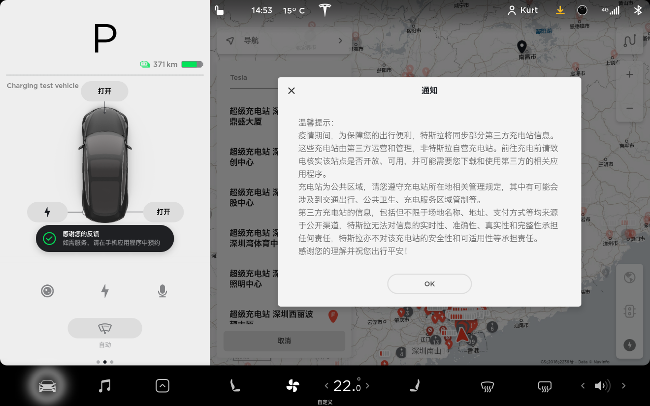 同时特斯拉表示,将陆续同步更多第三方充电站信息,满足用户在疫情期间出行的充电需求。用户也可将常用的优质第三方站点信息推荐给特斯拉,特斯拉会根据评估结果确定是否同步到车机系统中,以此为更多车主提供更为稳定的站点信息。