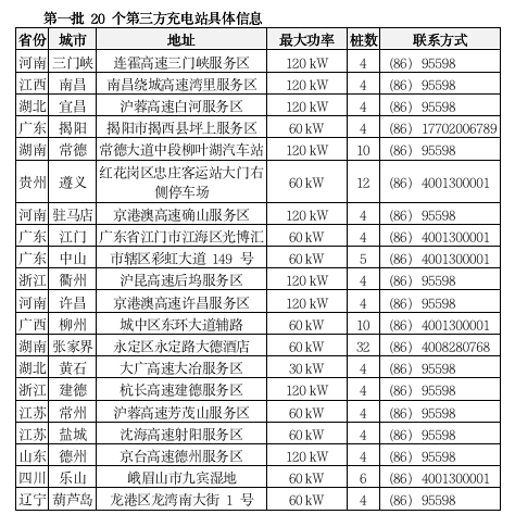 目前,第一批20个第三方充电站信息已经同步完毕,多位于高速公路主干道的服务区,以国家电网充电桩为主。用户可点击车机导航界面右下方的“充电”图标进行查询,位置显示和查找方法与Tesla目的地充电站类似。这些充电站均由第三方运营和管理,非特斯拉自营,建议用户先行致电查询站点状态和费用信息,再规划出行路线。