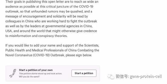 文中邀请全球广大科技工作者加入声明,“我们邀请其他人加入我们,支持武汉和中国各地的科学家、公共卫生专业人员和医疗专业人员。与前线同事并肩作战!我们用同一个声音说话。为了增加您对这一声明的支持,请在线签署我们的信件。We invite others to join us in supporting the scientists, public healthprofessionals, and medical professionals of Wuhan and across China。 Stand withour colleagues on the frontline! We speak in one voice。 To add your support forthis statement, sign our letter online。 LM is editor of ProMED-mail。 ”