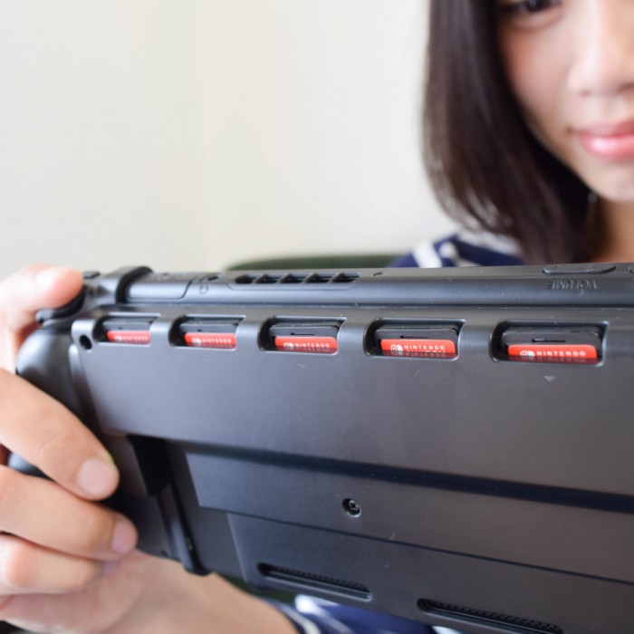 任天堂Switch早已经发售,目前各种周边多如牛毛,不过一款最新手柄外壳2月19日今天发售,更加实用深受玩家好评。一起来了解下。这款新周边手柄外壳主打“5in1”,顾名思义可以同时收纳5张卡,让玩家可以方便快捷的换上另一个游戏;两侧的握把直接提升握持舒适性,而且还可以直接放在桌上充当底座支架;内部端子允许一边充电一边游玩,更加实用方便更好用。