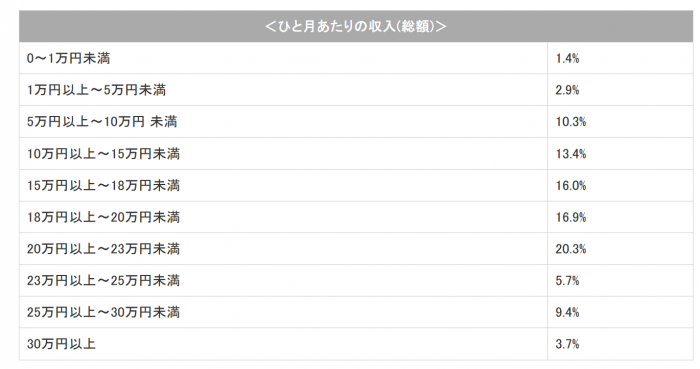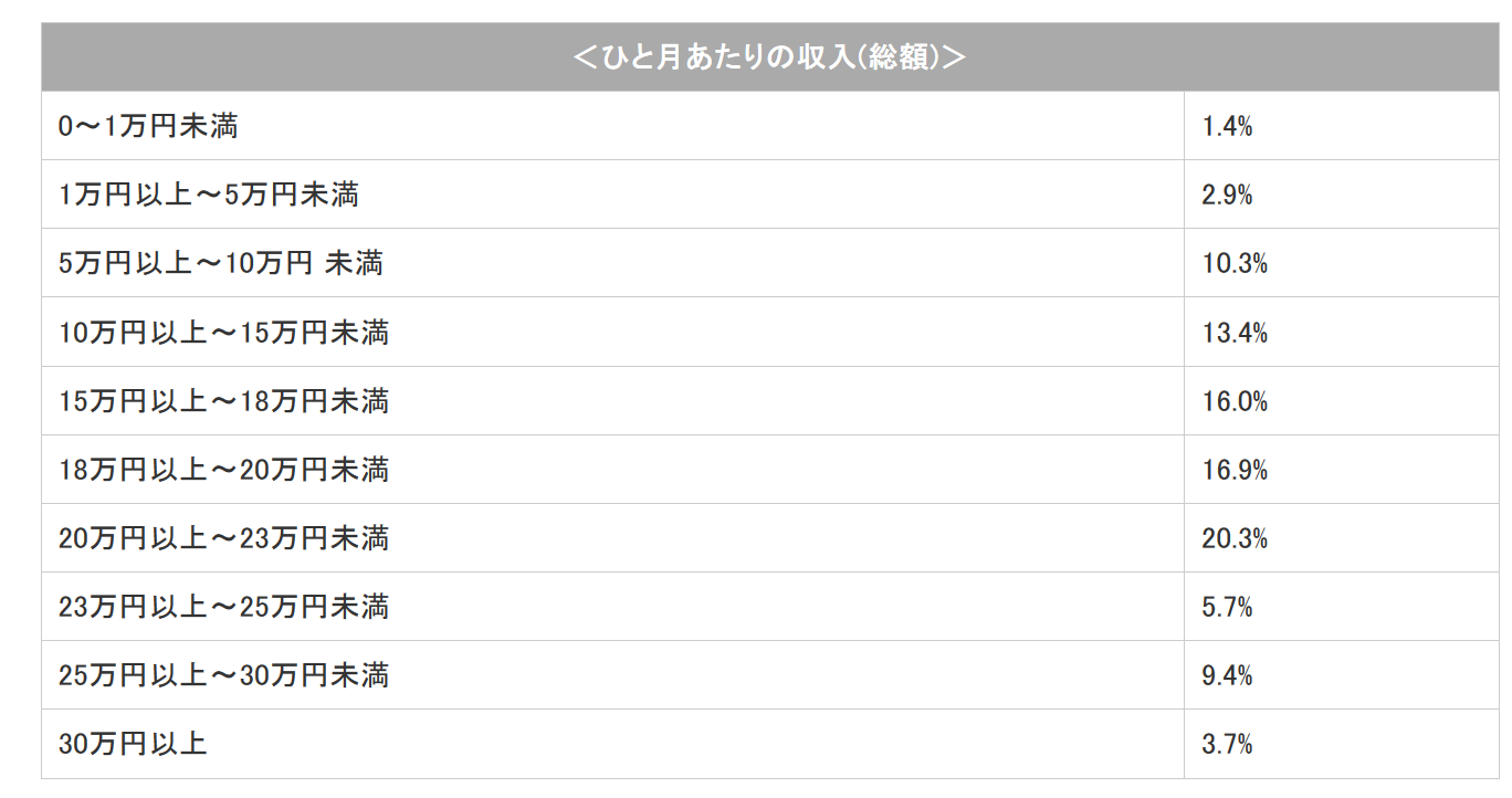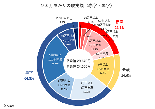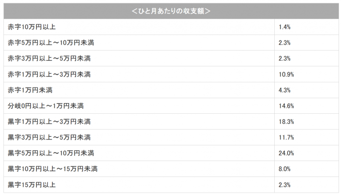 此外,有21.2%受访者的支出超过收入,使用信用卡来维持生计,另外有14.6%净收入在0-1万日元间。这意味着该样本人群中,有近三分之一的人无法存钱。