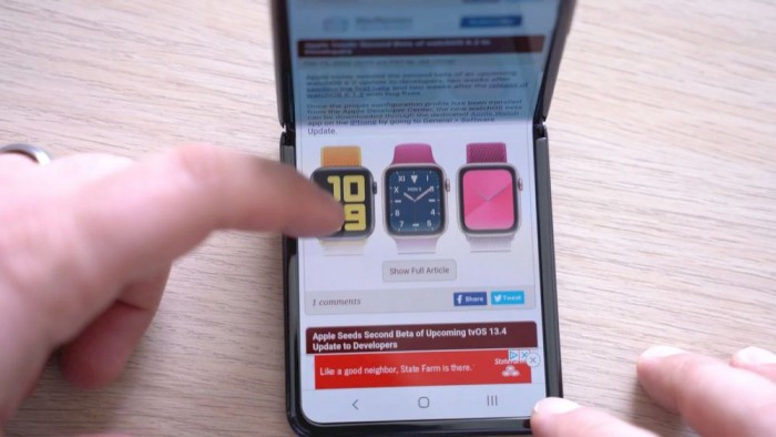Galaxy Z Flip的背面摄像头边上还有一个1.1英寸的Super AMOLED屏幕,虽然现实不了太多内容,但你就可以瞥一眼看到通知。手机外壳的其他部分被康宁大猩猩玻璃6包裹。