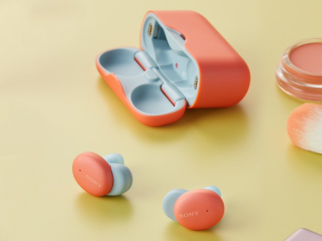 在设计上,WF-H800采用了拼色的设计(除黑色外),耳机的主体由两种不同的颜色交融,带来很强的视觉冲击,颜值也足够高。索尼一共提供了橘、黑、蓝、红、灰绿五种配色选择。硬件方面,耳机内置了6mm驱动单元,并拥有数字声音增强引擎(DSEE HX™)加持,能带来清晰、自然的声音表现。