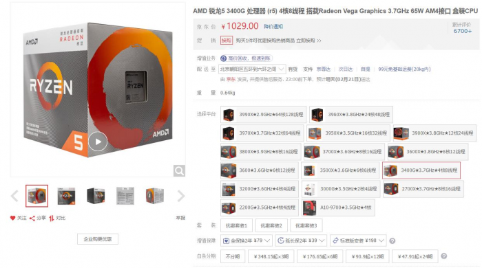 在国内市场上,锐龙5 3400G首发价是1199元,目前售价1029元,没涨价,不过相对锐龙3000处理器的降价来说,这个处理器的价格也是很坚挺的了。