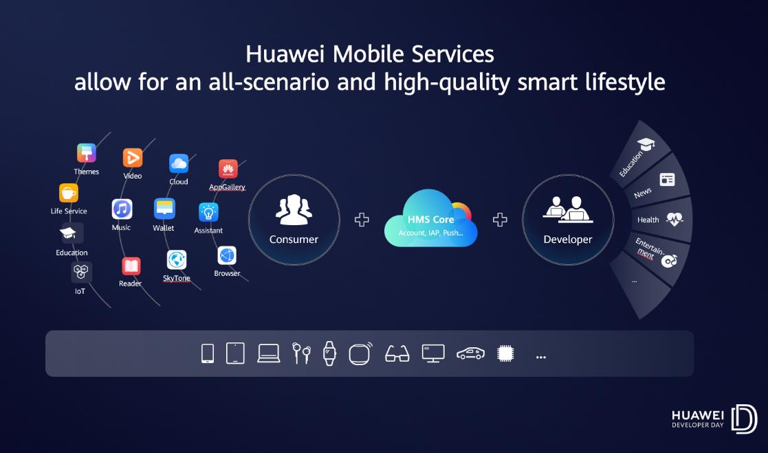在1月初的消费者终端新年信中,华为消费者业务CEO余承东提出,华为今年全力打造华为终端云服务(HMS),现已覆盖全球170多个国家和地区,月活用户达4亿。