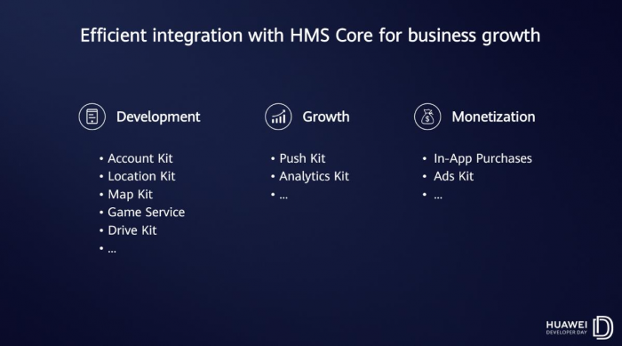 相比谷歌的GMS,华为的HMS移动服务去年在HDC大会上首次公布,当时有14项服务,包括9个基础服务和5个增长服务,不过到了2月份已经扩展到了24项服务了。