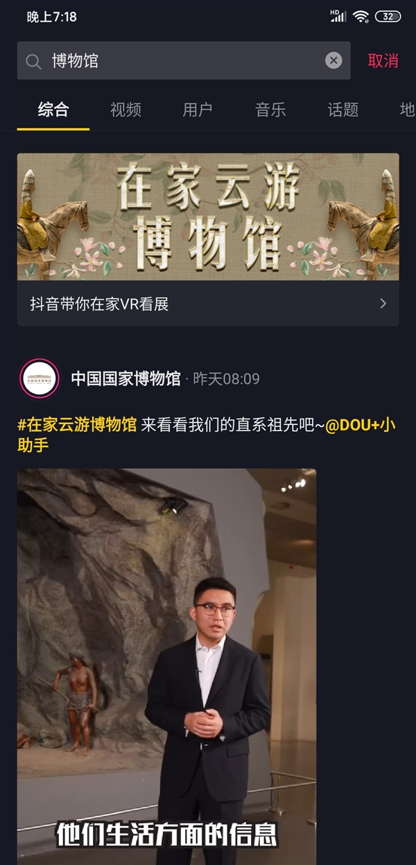 目前,“在家云游博物馆”已在抖音平台上线,网友朋友只需在抖音上搜索“博物馆”就能看到活动页面,获知直播详情及安排。同时,首场直播已经与今晚7点开始,由国家博物馆带来“证古泽今-甲骨文文化展”。
