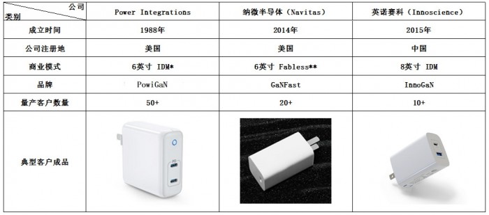 据充电头网了解,目前出现在香港电子展及美国CES展会上的众多氮化镓充电产品背后的氮化镓功率芯片主要来源于三大供货厂家: