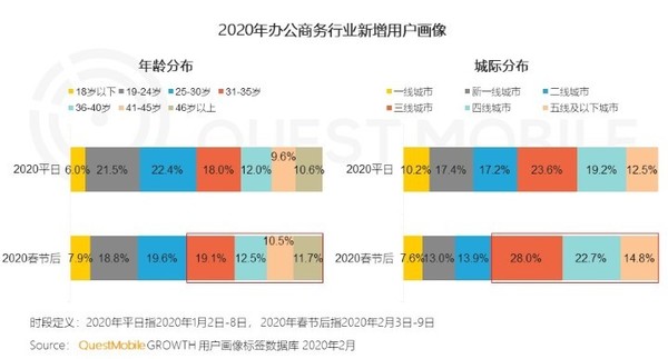 另外从总体上看,远程办公对三线及以下城市的下沉用户拉动明显,春节后新增用户中的下沉用户占比平日上涨10个百分点,达到了65.6%。这样的用户规模也让许多在线文档软件,比如石墨文档、腾讯文档等加入战局。可以看出,在现在这个特殊时期下,远程办公为企业复工提供了很大的助力。不过,现在就将远程办公称之为风口,从此腾飞,可能还为时尚早。