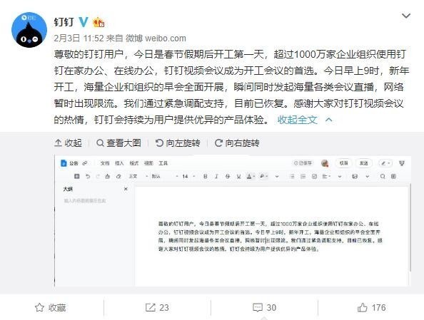除此之外,远程办公软件本身的承载能力还有待加强。2月3日,钉钉、企业微信等办公软件均出现了服务器崩溃的情况。