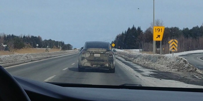 据悉,Kevin Proulx及其女儿在蒙特利尔和魁北克之间的高速公路发现了一辆Model Y。看起来它不怎么干净。
