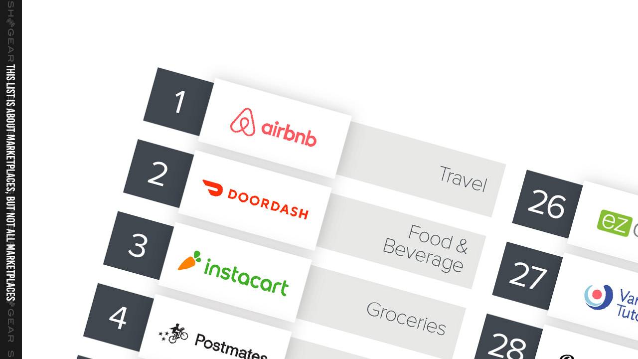 Airbnb,Doordash,Instacart和Postmates是当今世界上最大的几家非上市或创业市场公司,它们在A16Z所谓的“ Marketplace 100”中排名前五。该分析组Andreessen Horowitz使用来自Second Measure的数据创建了此列表,该公司收集并匿名化通过信用卡,借记卡和银行转账获取的美国消费者支出汇总数据。
