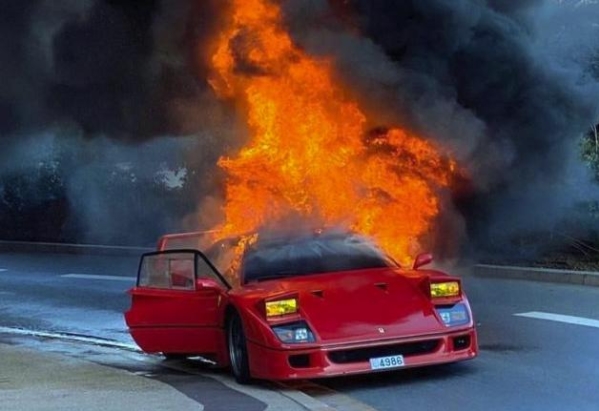 F40自燃并非个案,2016年有一辆刚修复完成的法拉利F40自燃,2017一辆参加意大利的某活动时候发生了自燃。可以说,在近几年,每一年都有一辆法拉利F40发生自燃的情况。