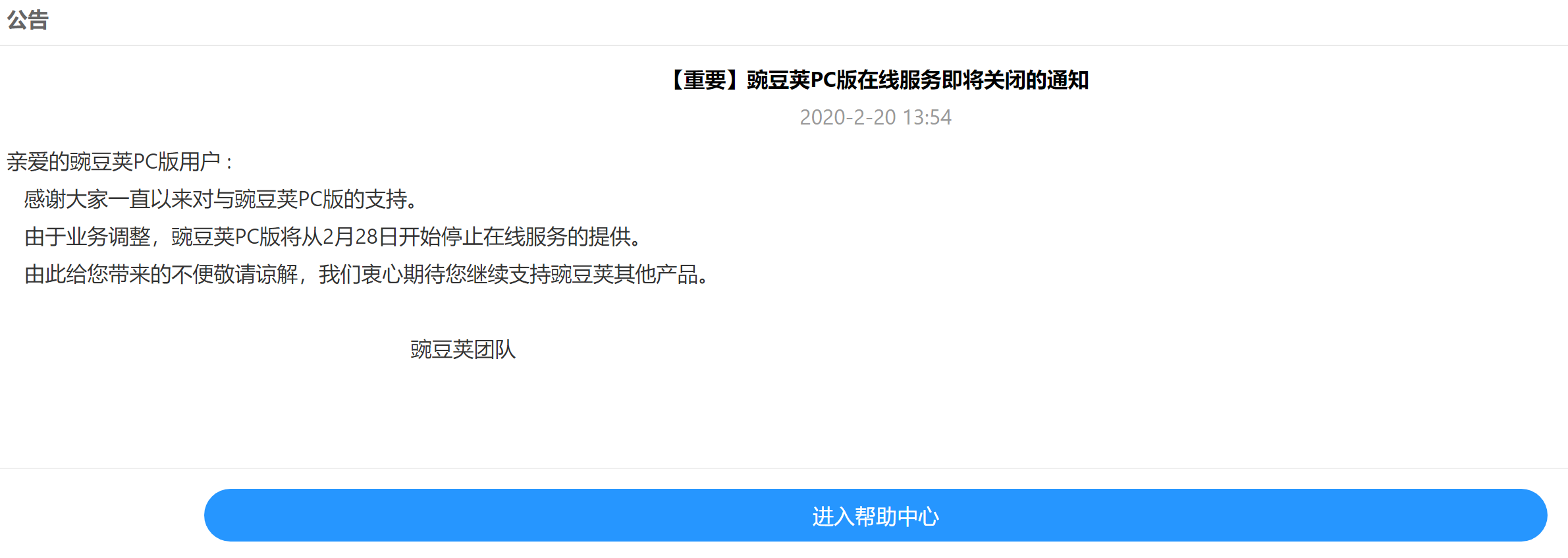 【重要】豌豆荚PC版在线服务即将关闭的通知