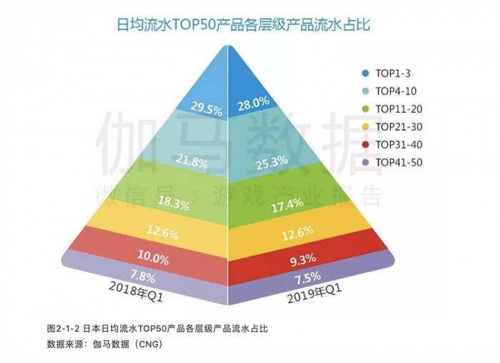 而众所周知,头部才是一个市场的核心地带,伽马数据统计,2019年Q1日本TOP10产品,日均流水占大盘56.3%。换言之,能够进入头部市场,真正触及到核心地带的产品依旧寥寥,我们相信,这也会是未来国产游戏出海努力的方向。