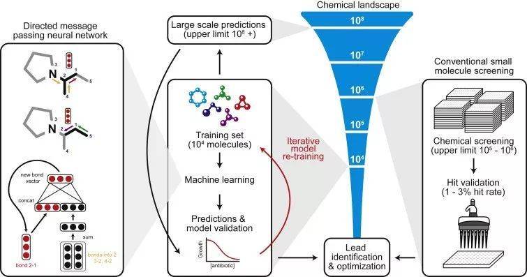 研究人员通过计算机深度学习系统建立的模型,可以在几天内筛选超过 1 亿个化合物,从而挑选出不同于现有药物杀死细菌机制的潜在抗生素。