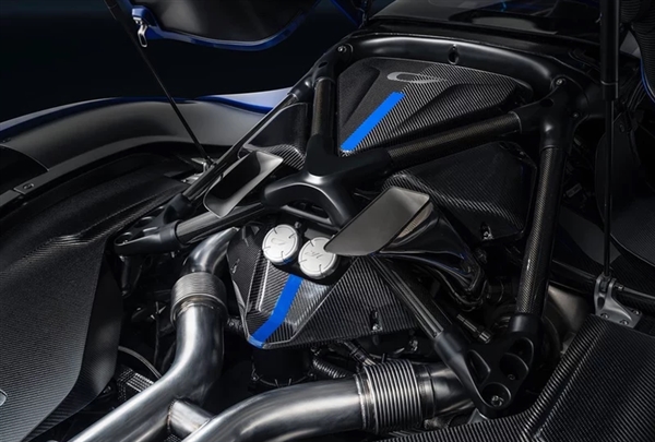 动力是新车的最大亮点之一,Czinger C21中置的2.88升V8双涡轮增压发动机,平面曲轴,最高可以到11000转。结合两个前轮电机,最大输出可以达到1233马力,匹配的是七速序列式变速箱。