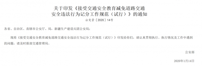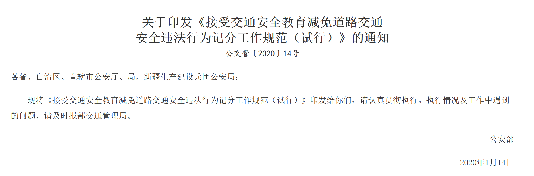 《通知》说明为充分发挥道路交通安全违法行为记分制度教育引导、鼓励守法的正向激励作用,加强机动车驾驶人交通安全教育,推动提升机动车驾驶人交通安全意识。