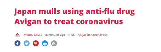 据日本共同社刚刚消息,日本厚生劳动大臣加藤胜信22日透露,日方正研究使用抗流感药物治疗新冠肺炎患者。报道称,加藤胜信表示,目前还没有针对新冠肺炎患者的既定治疗方案,不过日本正在考虑使用抗流感药物“Avigan”治疗新冠肺炎患者。