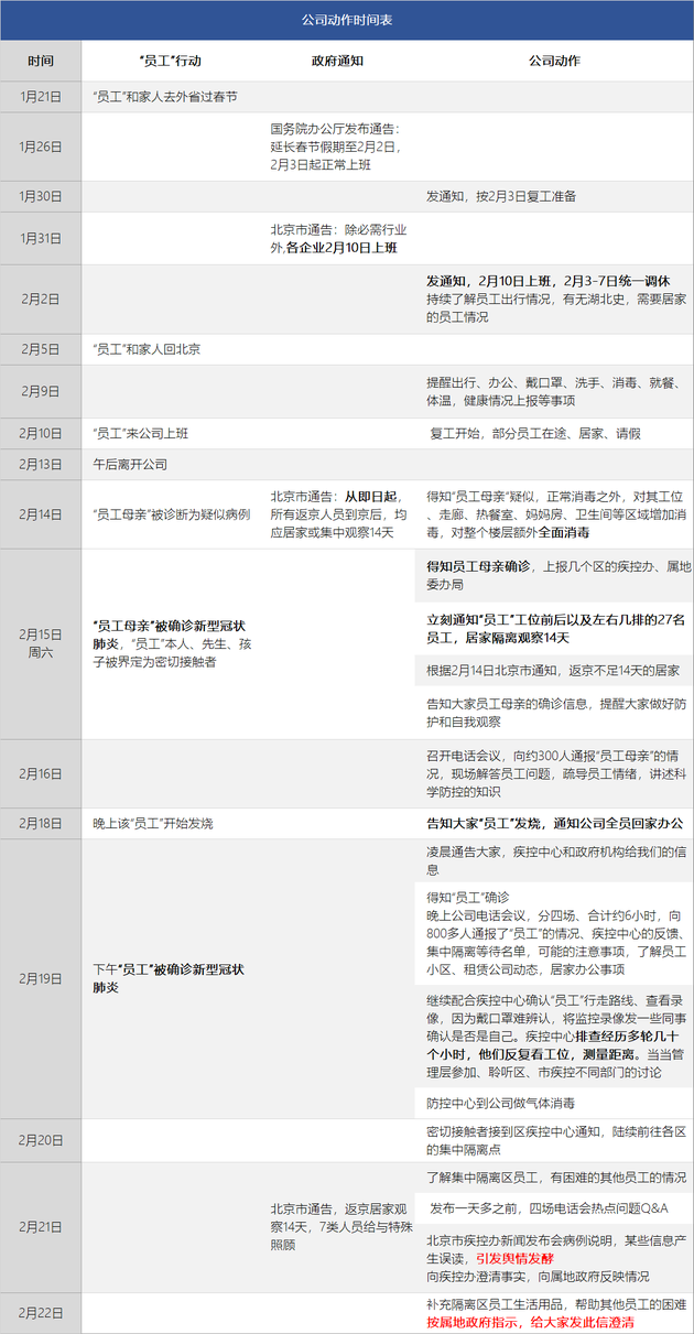 具体事件发生的时间顺序,请参考我们给员工的沟通信。