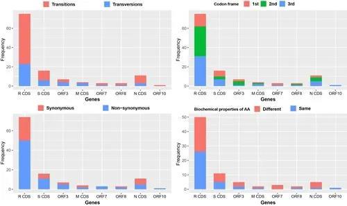 好消息是,研究人员发现新冠病毒基因组没有发生明显的重组事件。他们在 8 个蛋白质编码区发现了120 个核苷酸突变点位,基因组中的 10 个蛋白质编码区的突变点位均匀分布。