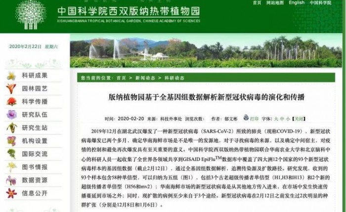 新冠肺炎爆发至今已两月有余,学者们对病毒源头的追溯也从未停歇。2 月 20 日,中国科学院西双版纳热带植物园通过官网发布研究成果信息称,武汉华南海鲜市场的新型冠状病毒是从其他地方传入的 ,推论此市场不是病毒发源地。而人际传播在可能 2019 年 12 月,甚至 11月下旬便开始了。