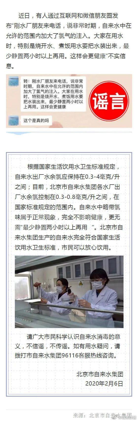 网传自来水加大氯气注入,需静置两小时以上再用?北京市自来水集团已辟谣,假的!