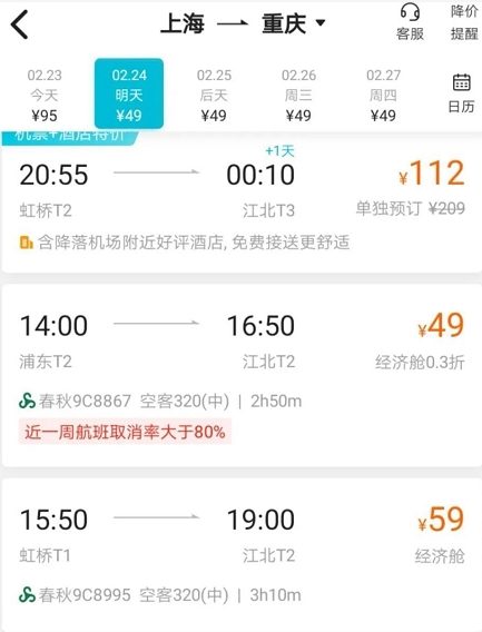 目前从市场来看,客流的单向性比较明显,从客源地到大城市工作的地方票价相对较高,基本上都是五折六折。而从大城市到客源地的票价就很低,这属于节后春运的正常现象。
